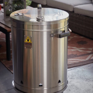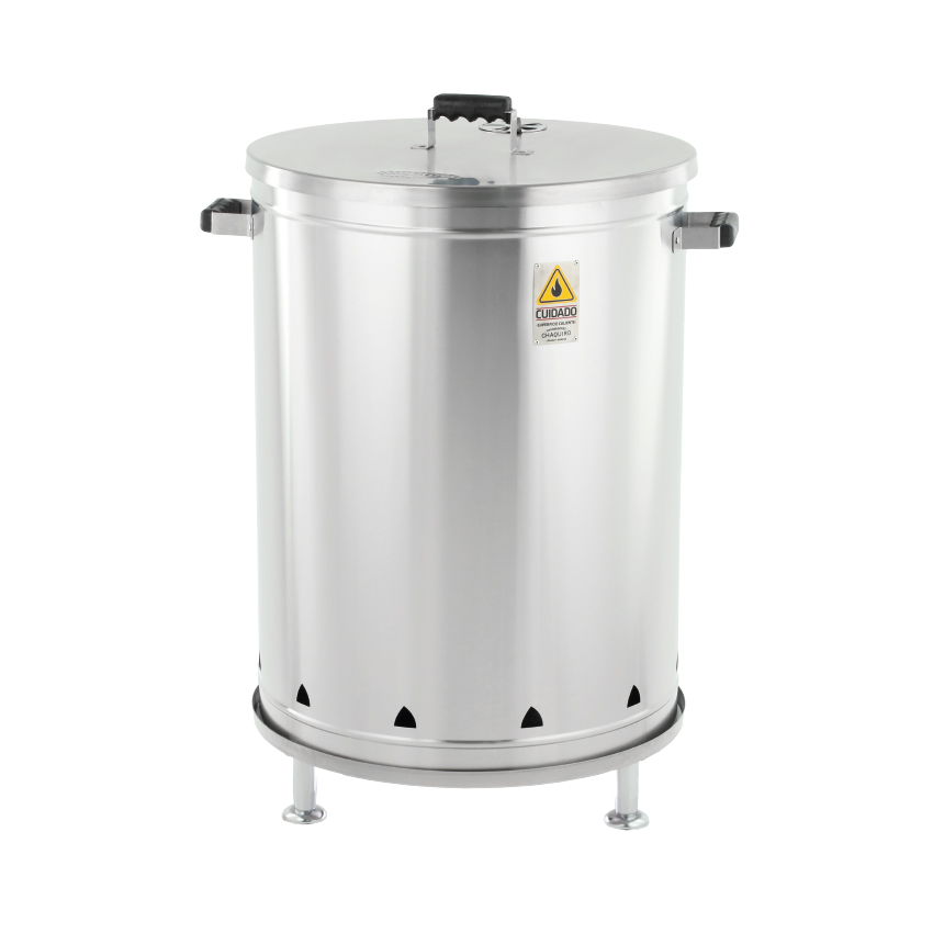 Acero inoxidable 304 calibre 18 (cilindro). Acero inoxidable 430 calibre 16 (base y tapa). Maniguetas en polípropileno. Patas fabricadas en acero inoxidable 430 calibre 18