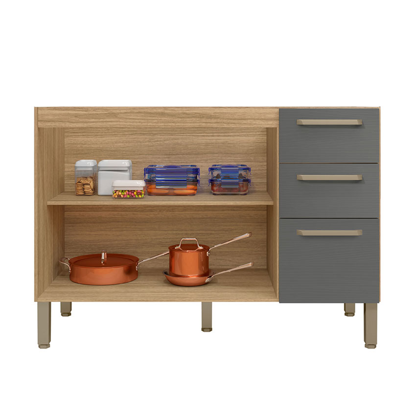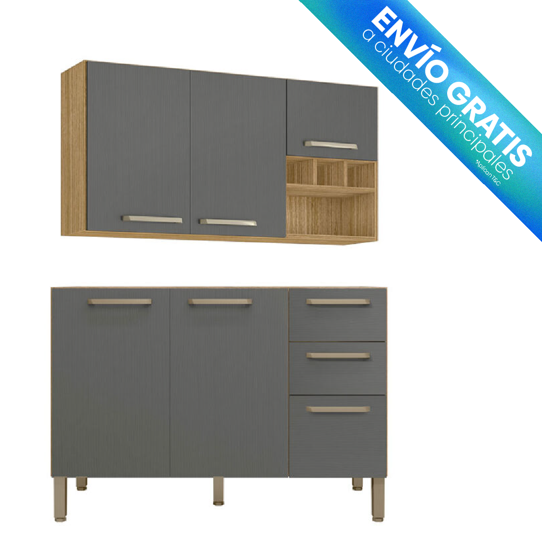COCINA 120CM JAZMÍN 6 PUERTAS 2 CAJONES MADERADO NATURAL/GRIS