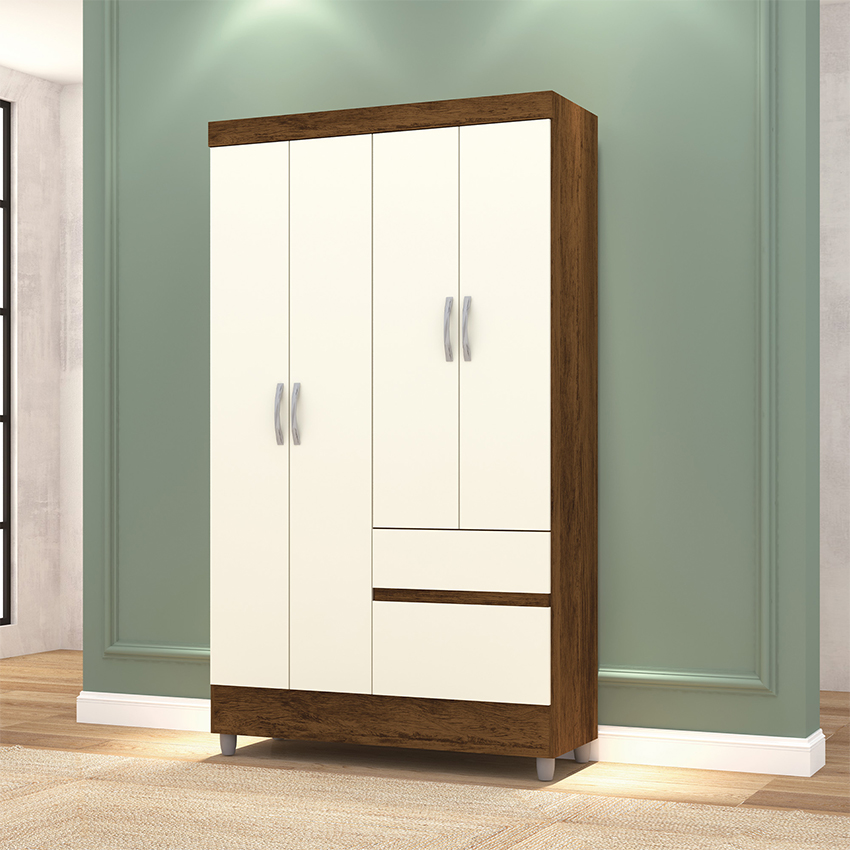 Clóset 4 Puertas 2 Cajones Bonic Marrón Blanco Apagado