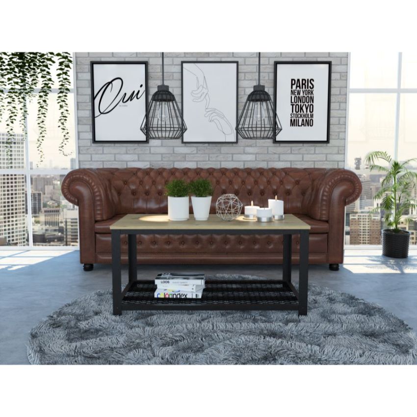 Mesa de Centro Dusty, Café Claro, con Estructura Metálica Negra