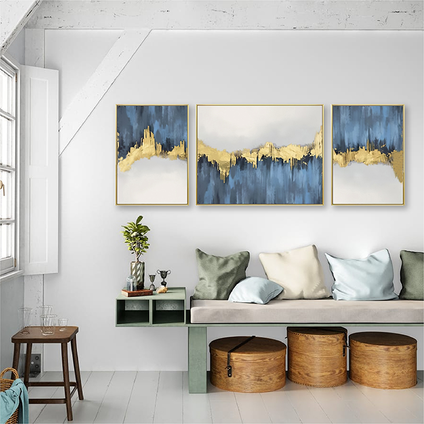 Set x 3 cuadros azul dorado mdf