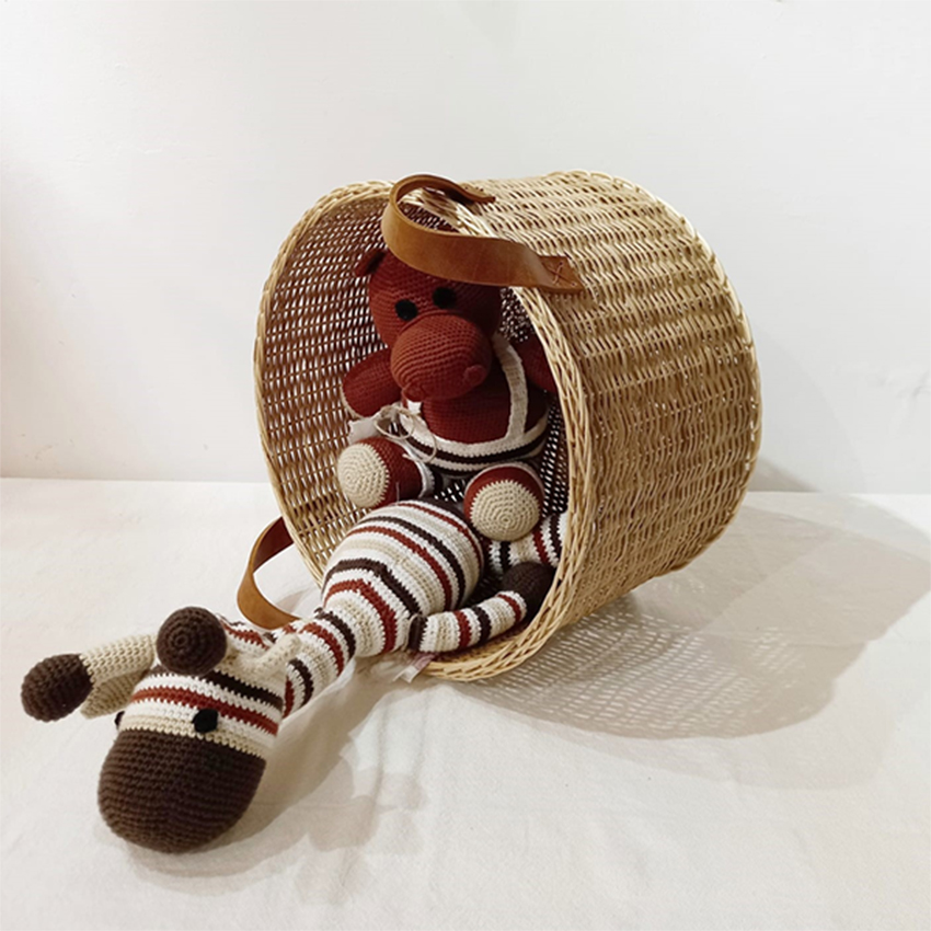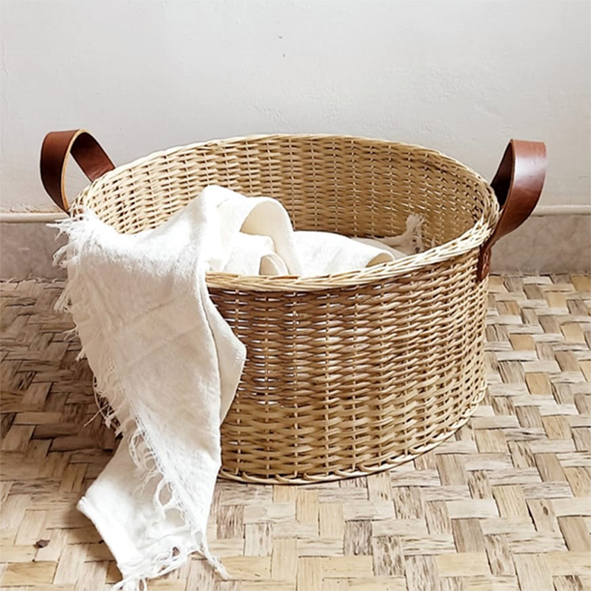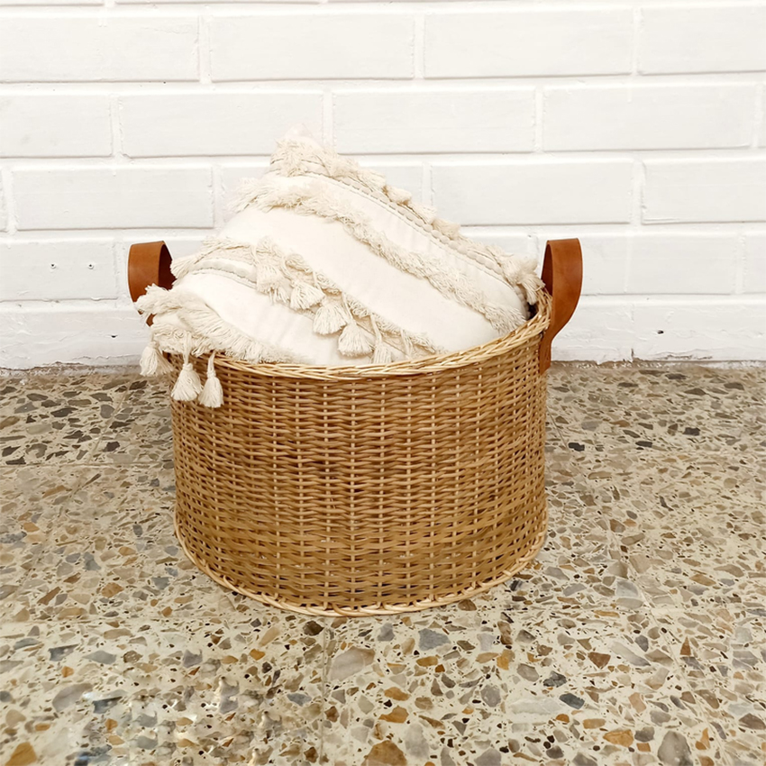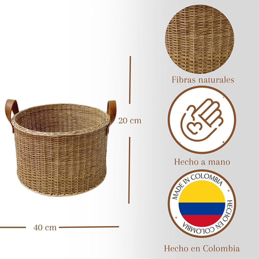 Canasto Faria de 40×20 cm en yaré con agarraderas de cuero