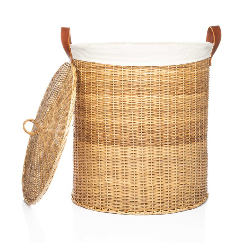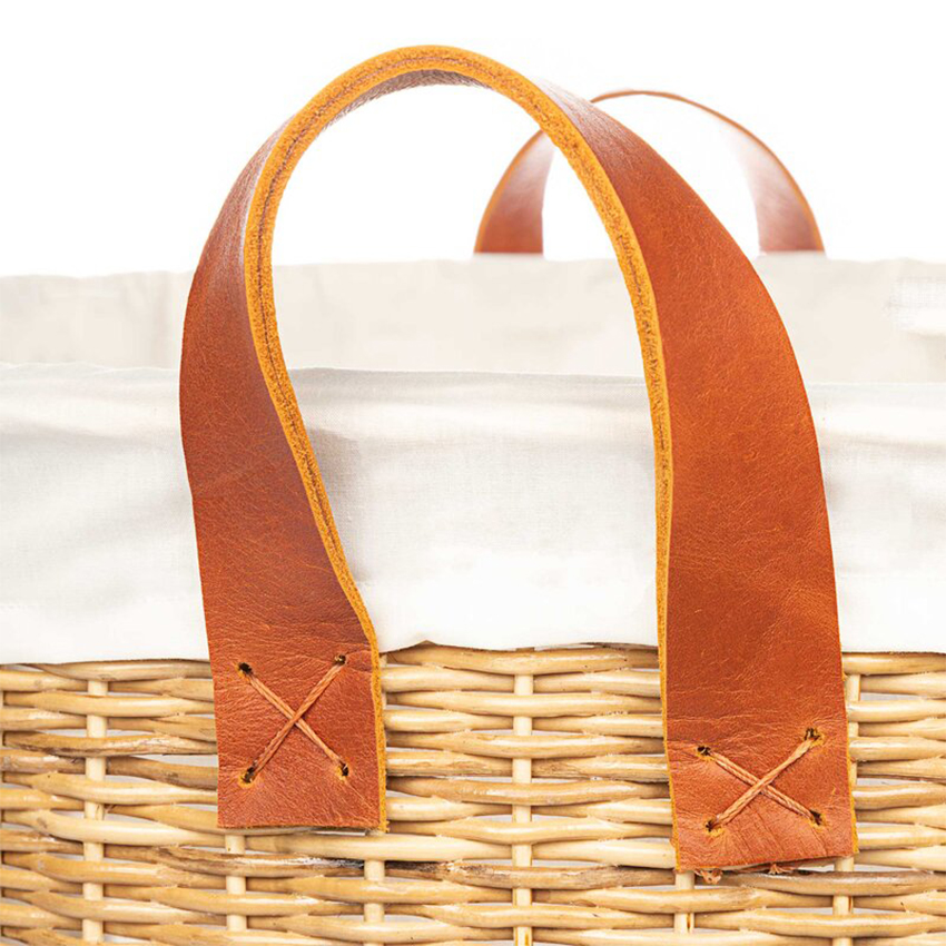 Canasto Teo de 40×50 cm en mimbre natural con agarradera de cuero