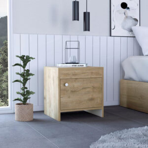 Mesa de Noche Tutto, Macadamia y Blanco, con Cajón Para Guardar Objetos Ideal Para Espacios Reducidos