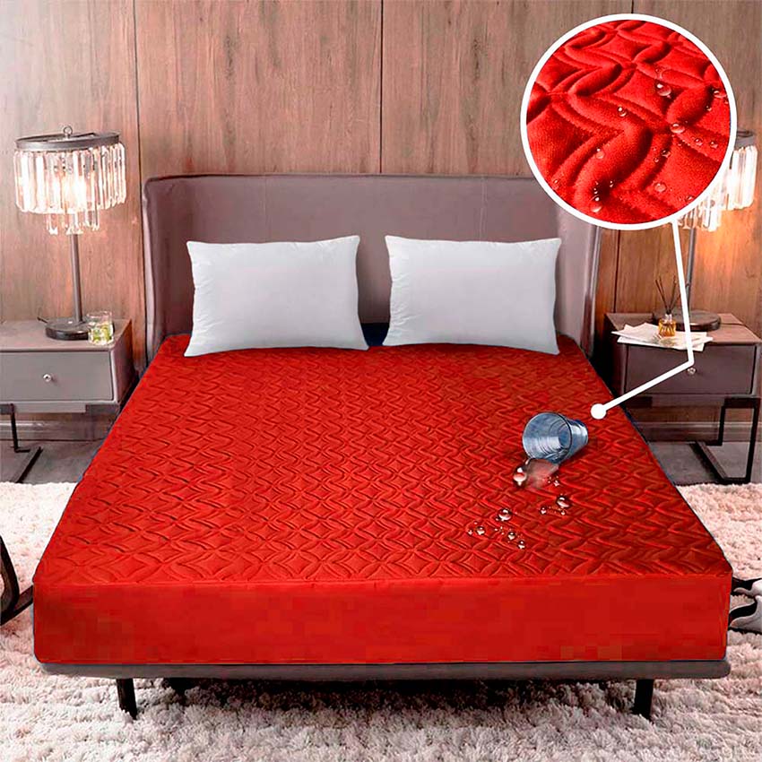 Protector Colchón Semidoble Impermeable Acolchado Rojo