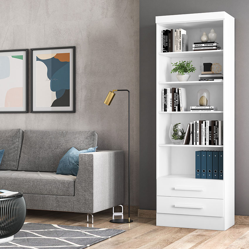 La Biblioteca Curitiba cuenta con dos cajones y cinco compartimientos ideales para optimizar y decorar cualquier espacio del hogar o la oficina.