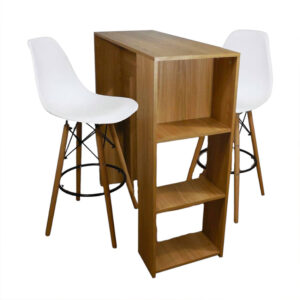 Combo Mesa Bar Madrid Fresno (101,5x100x40)+ 2 sillas Eames Blancas