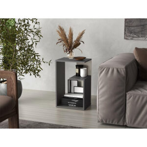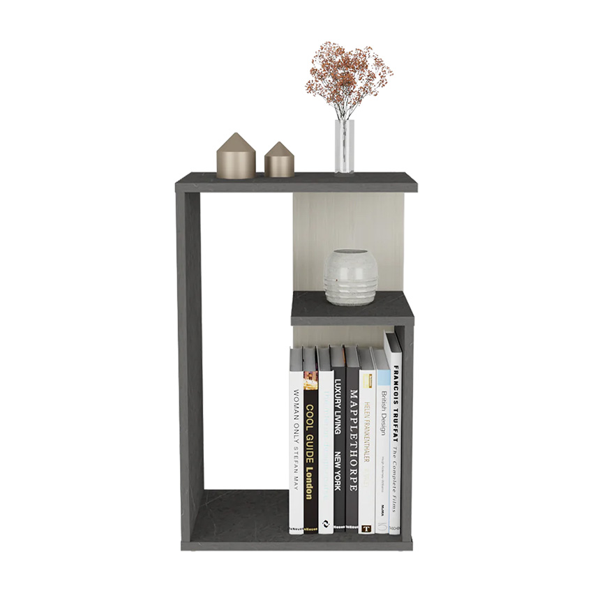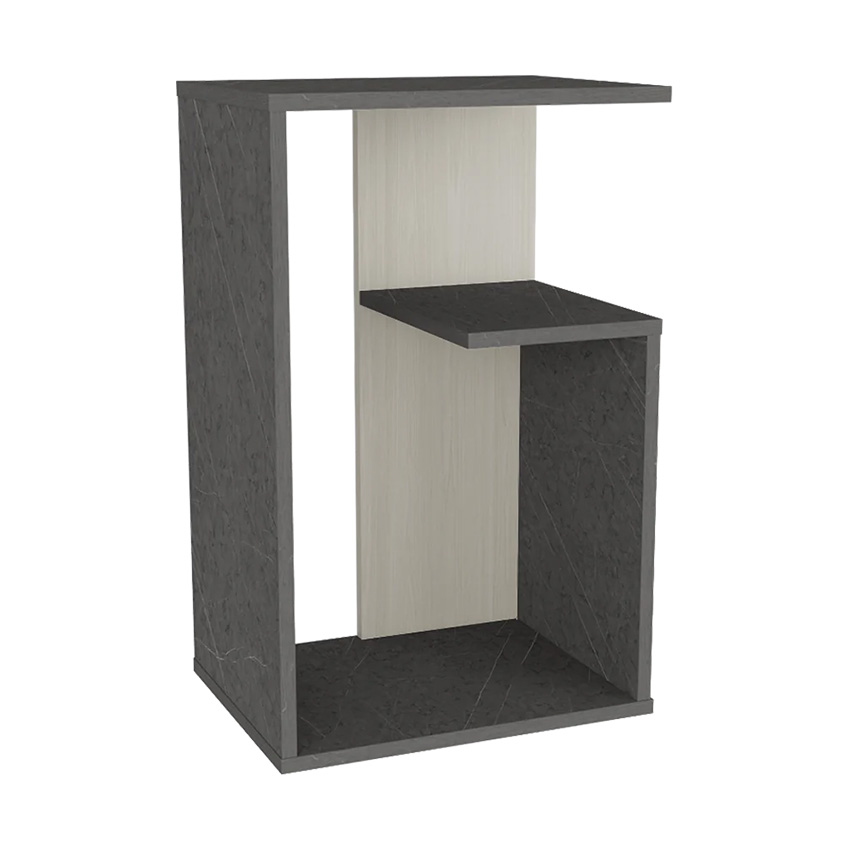Mesa Auxiliar Evert, Piedra y nevado, con diseño moderno y espacio para ubicar objetos