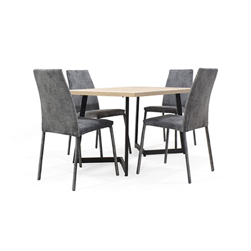 Set Comedor 4 puestos Rio sillas Venecia tela gris