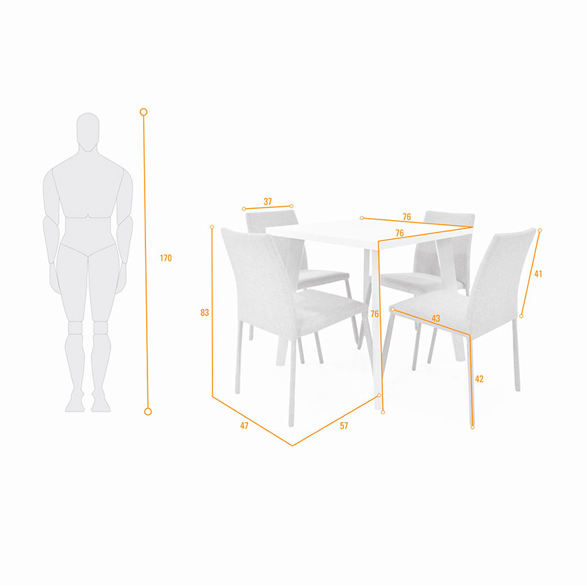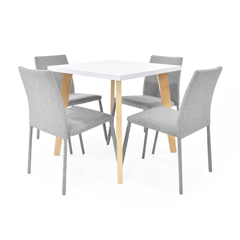 Set Comedor Lyon 4P Sillas Lugo Tela Plata